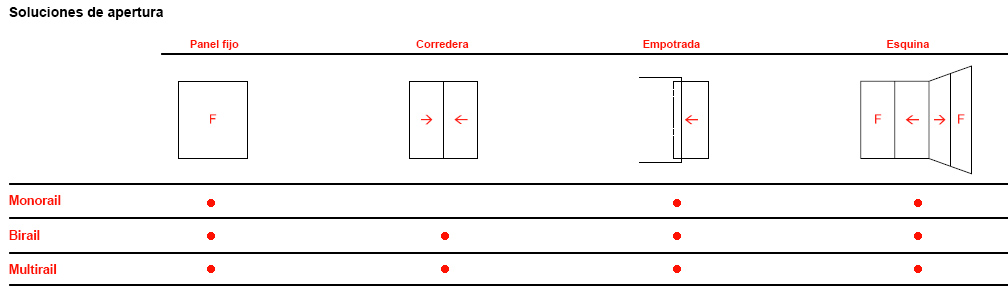 | Peso máx. | Up to 250 Kg./glass panel | |